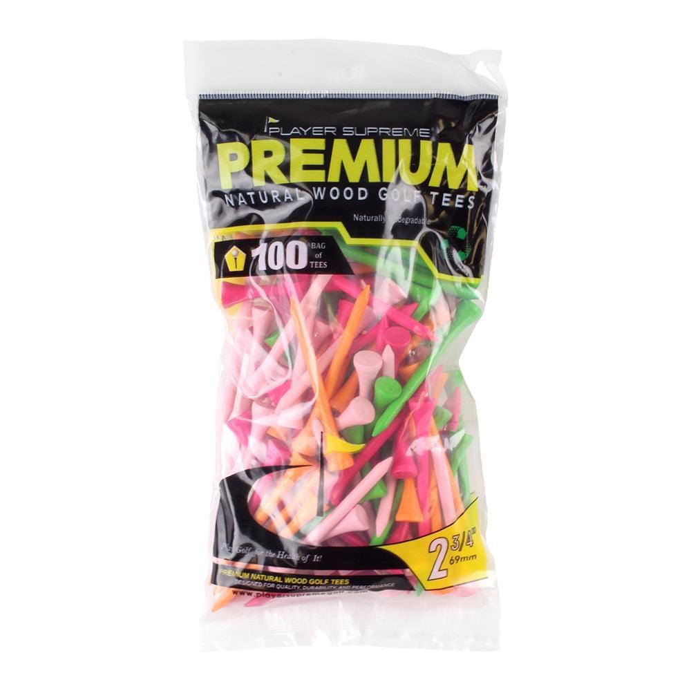 2 3/4" and 3 1/4" Player Supreme Premium Wood Golf Tee - 100 Pack Neon, White or Natural