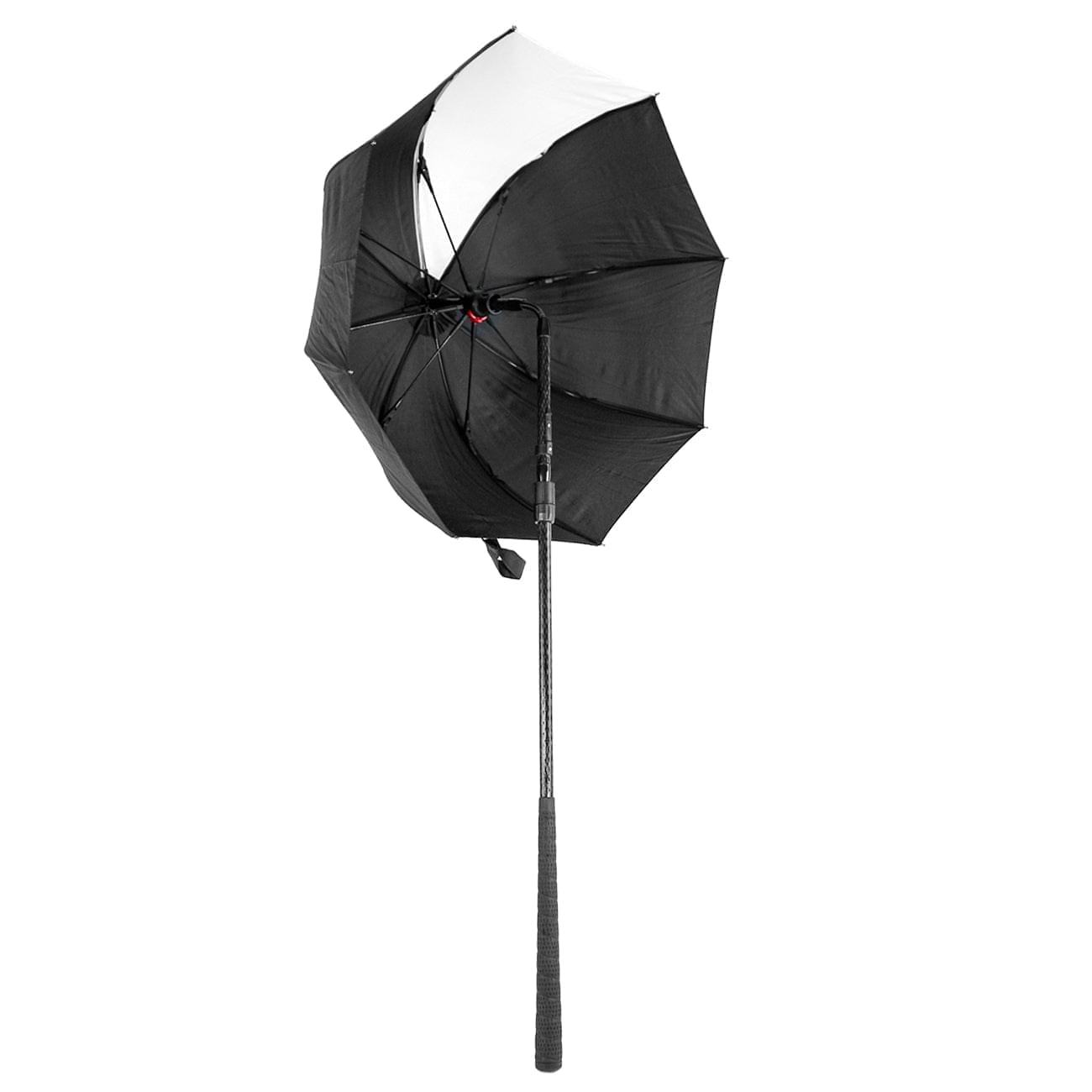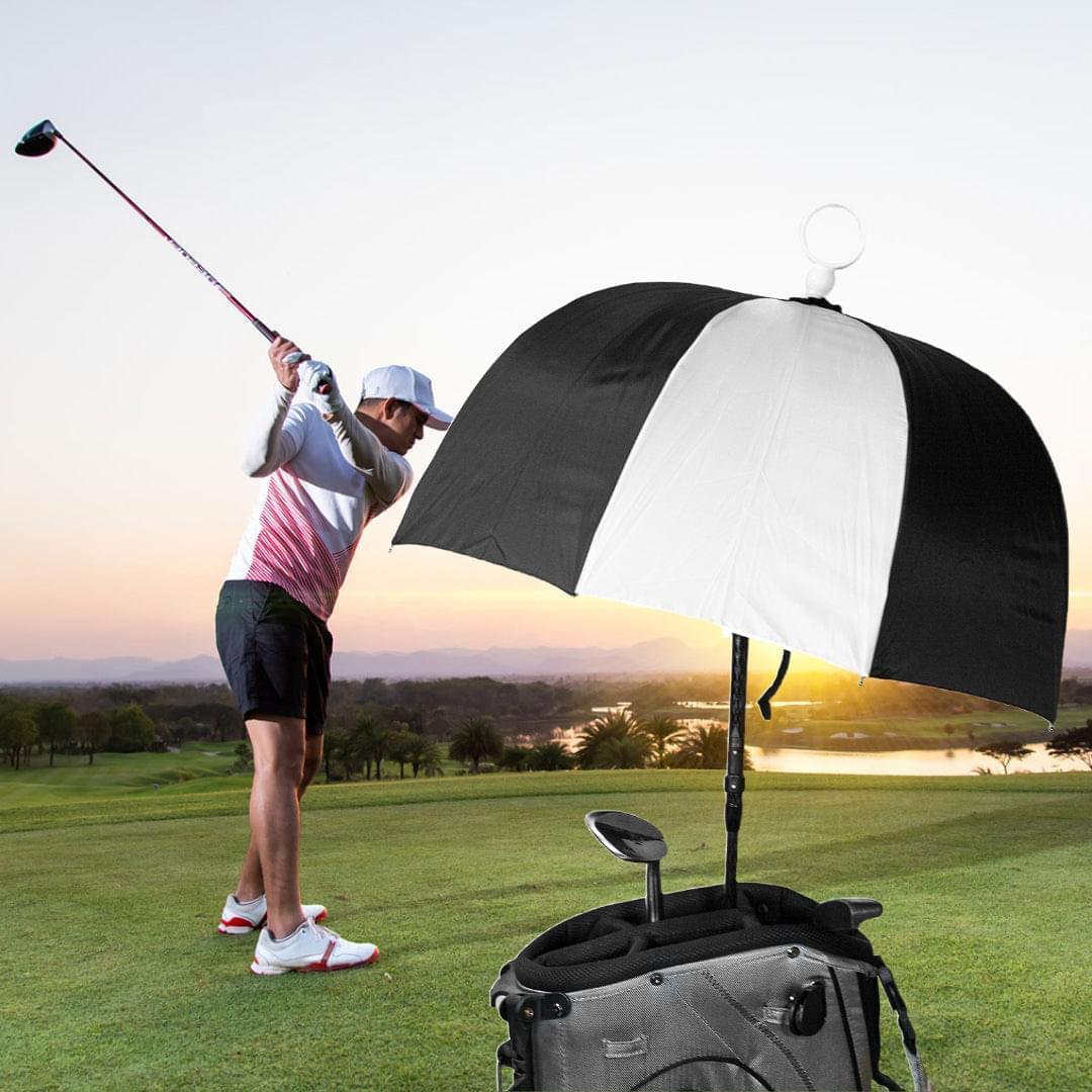 Don't let rain impact your golf game! JP Lann's 2-in-1 Golf Bag Umbrella & Ball Retriever Protects Clubs in the Golf Bag against Inclement Weather. Mounted on 56" telescopic shaft with push button lock. Sheath included 21" Umbrella Coverage. The goose neck allows you to easily angle the umbrella however you'd like and will stay in place! Equipped with attached ball retriever, this umbrella is perfect for EVERY golfer!