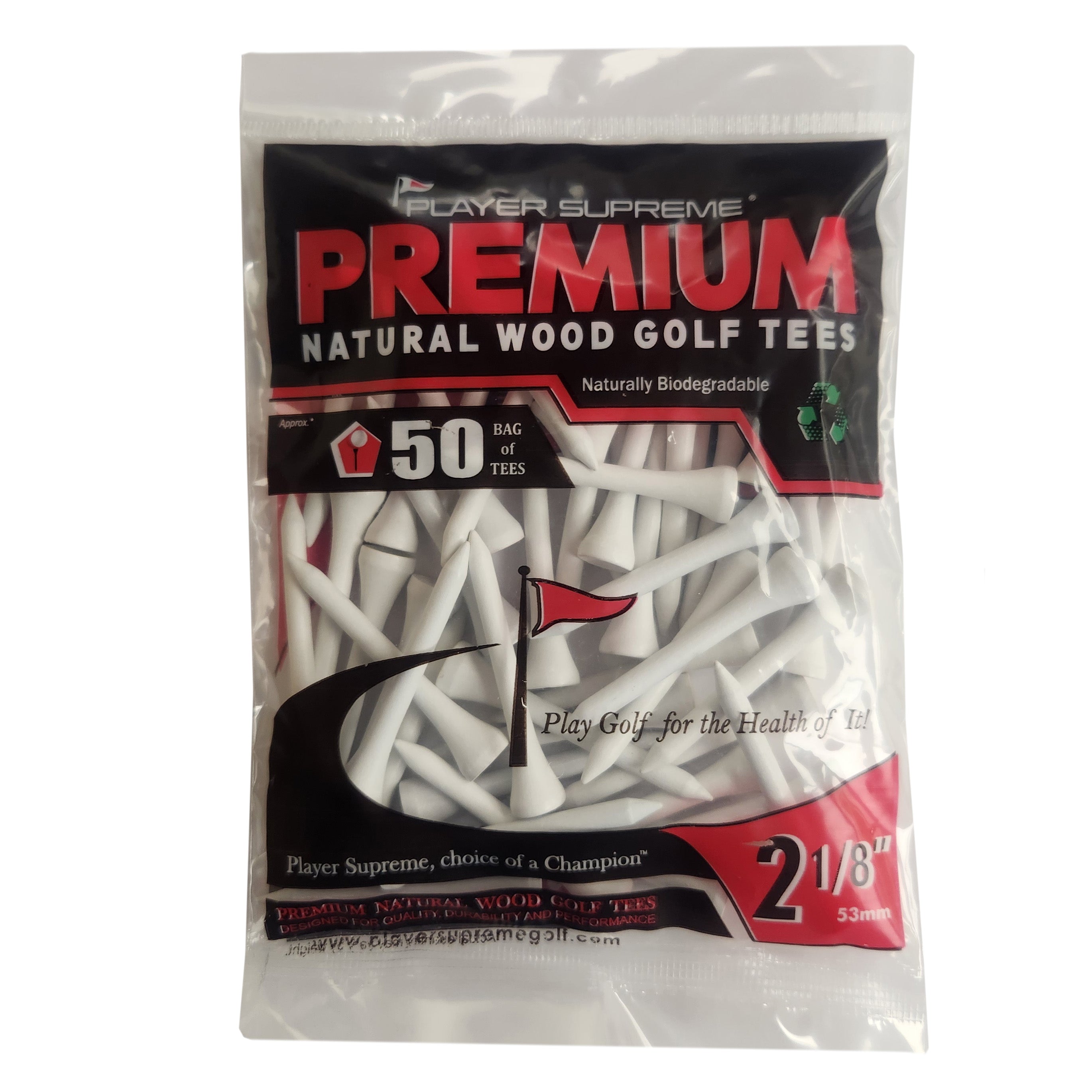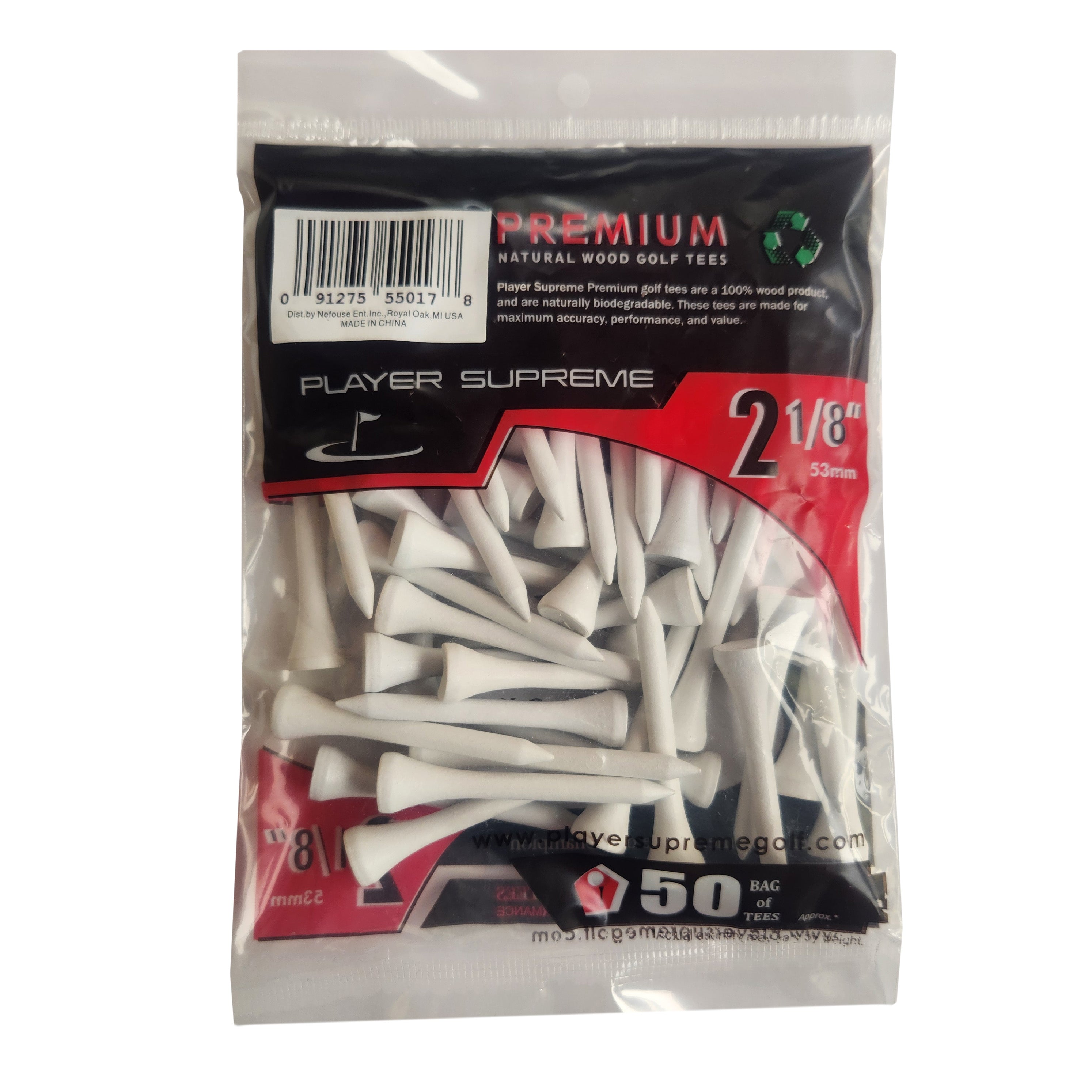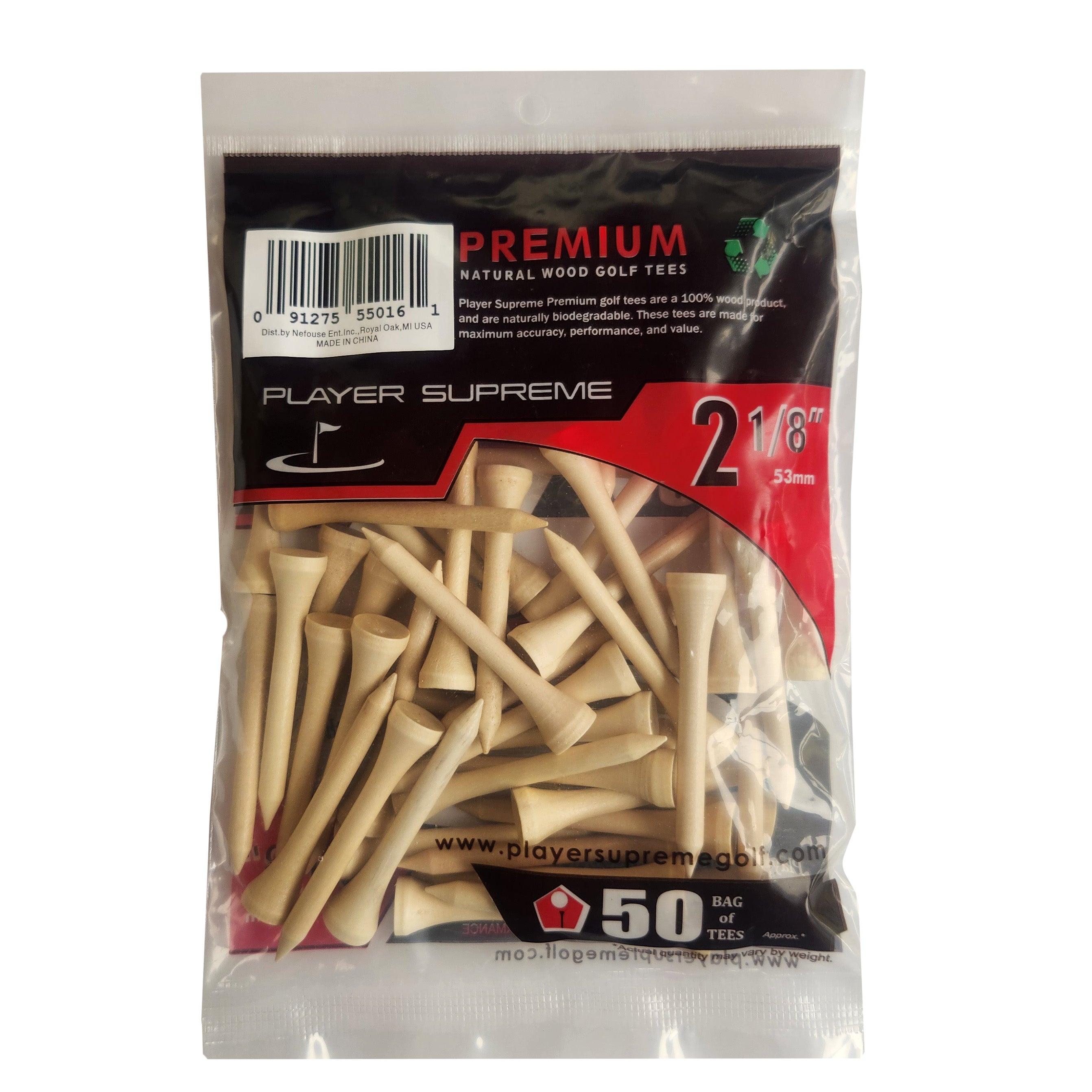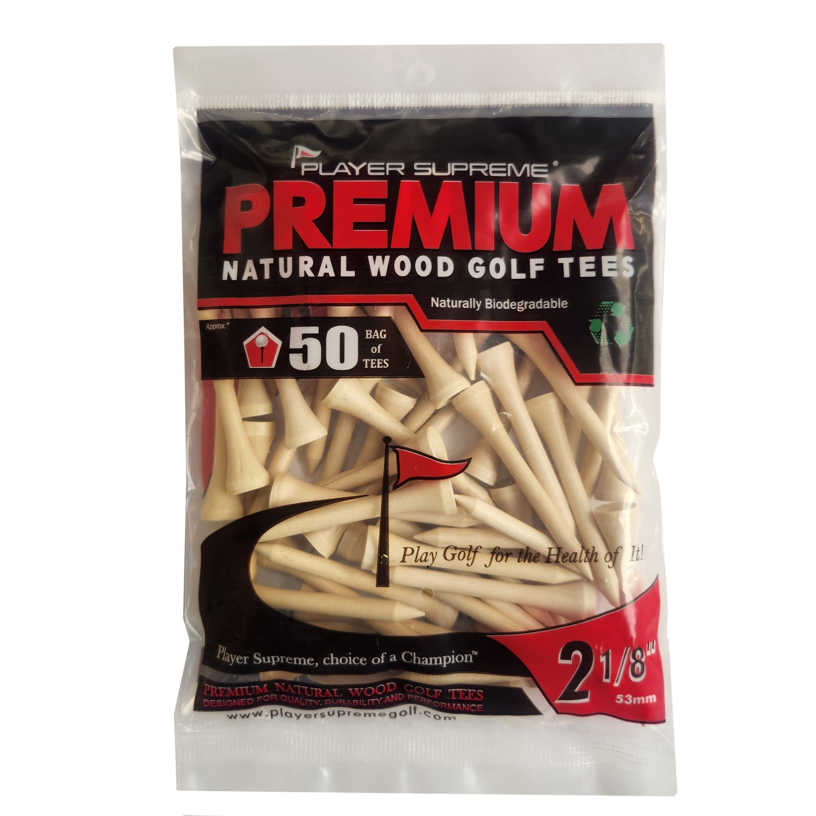 Player Supreme Premium golf tees are a 100% wood product and are naturally biodegradable. These tees are made for maximum accuracy, performance and value. Available in 3 lengths: 2 1/8", 2 3/4" & 3 1/4".