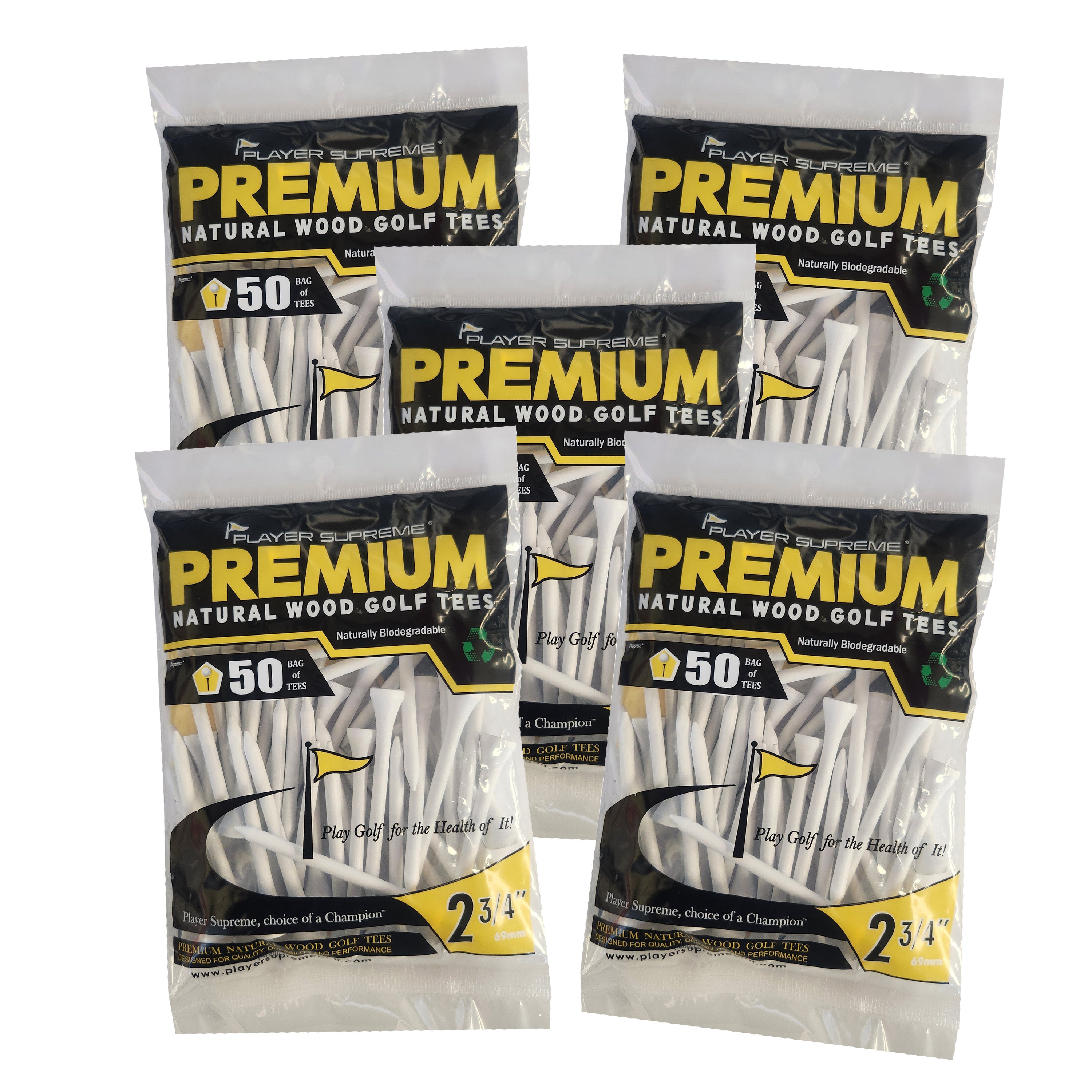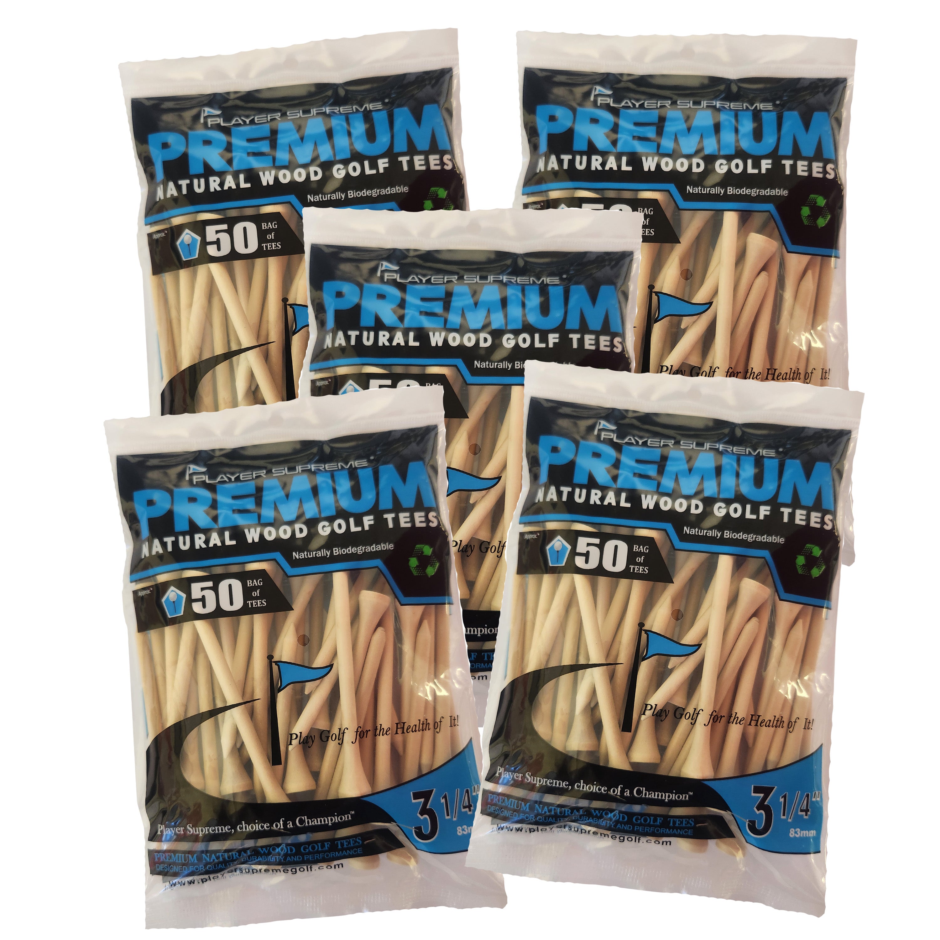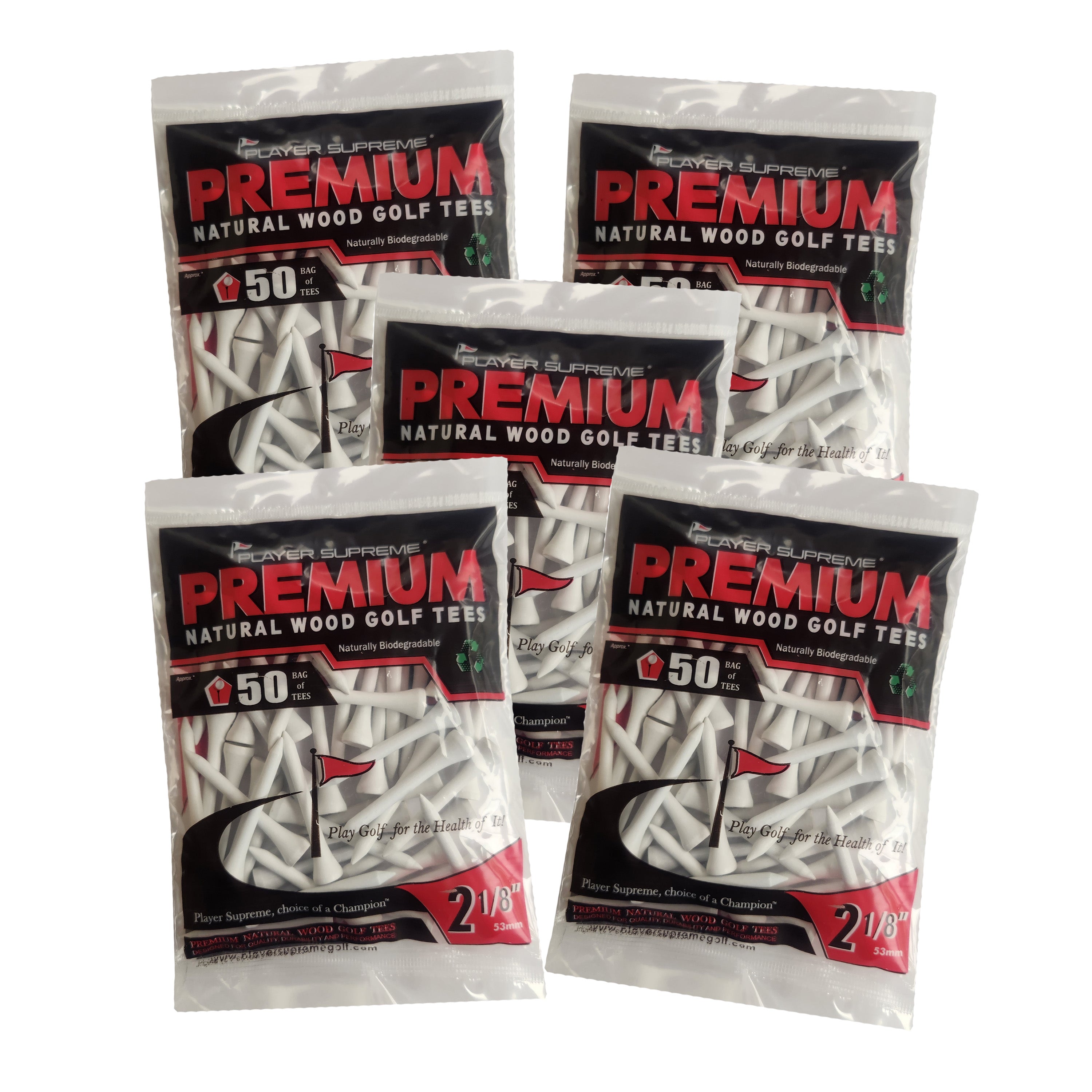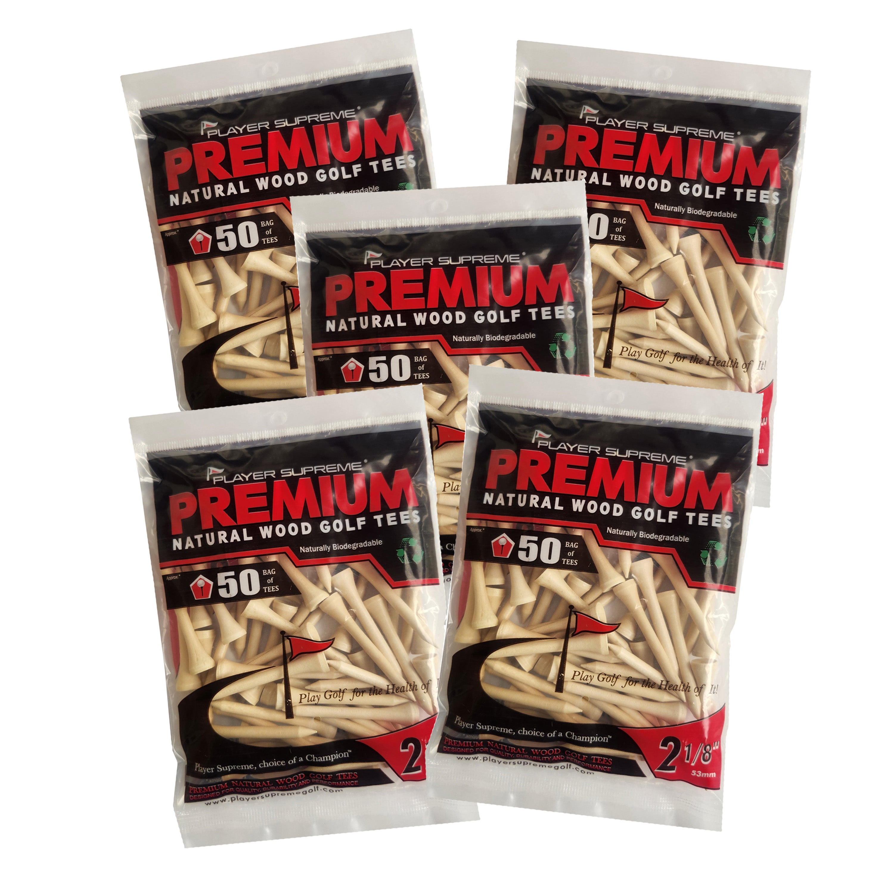 Player Supreme Premium golf tees are a 100% wood product and are naturally biodegradable. These tees are made for maximum accuracy, performance and value. Available in 3 lengths: 2 1/8", 2 3/4" & 3 1/4".