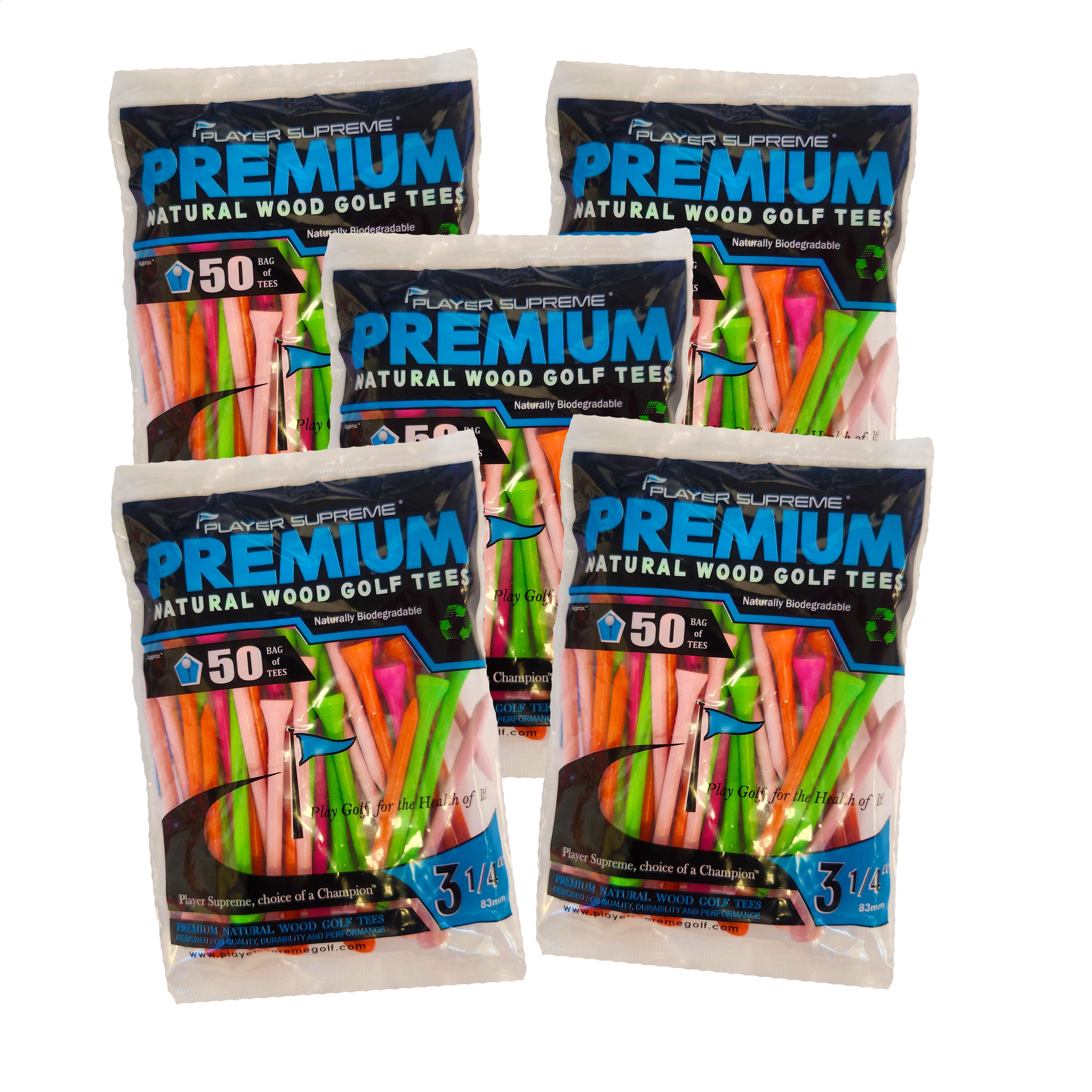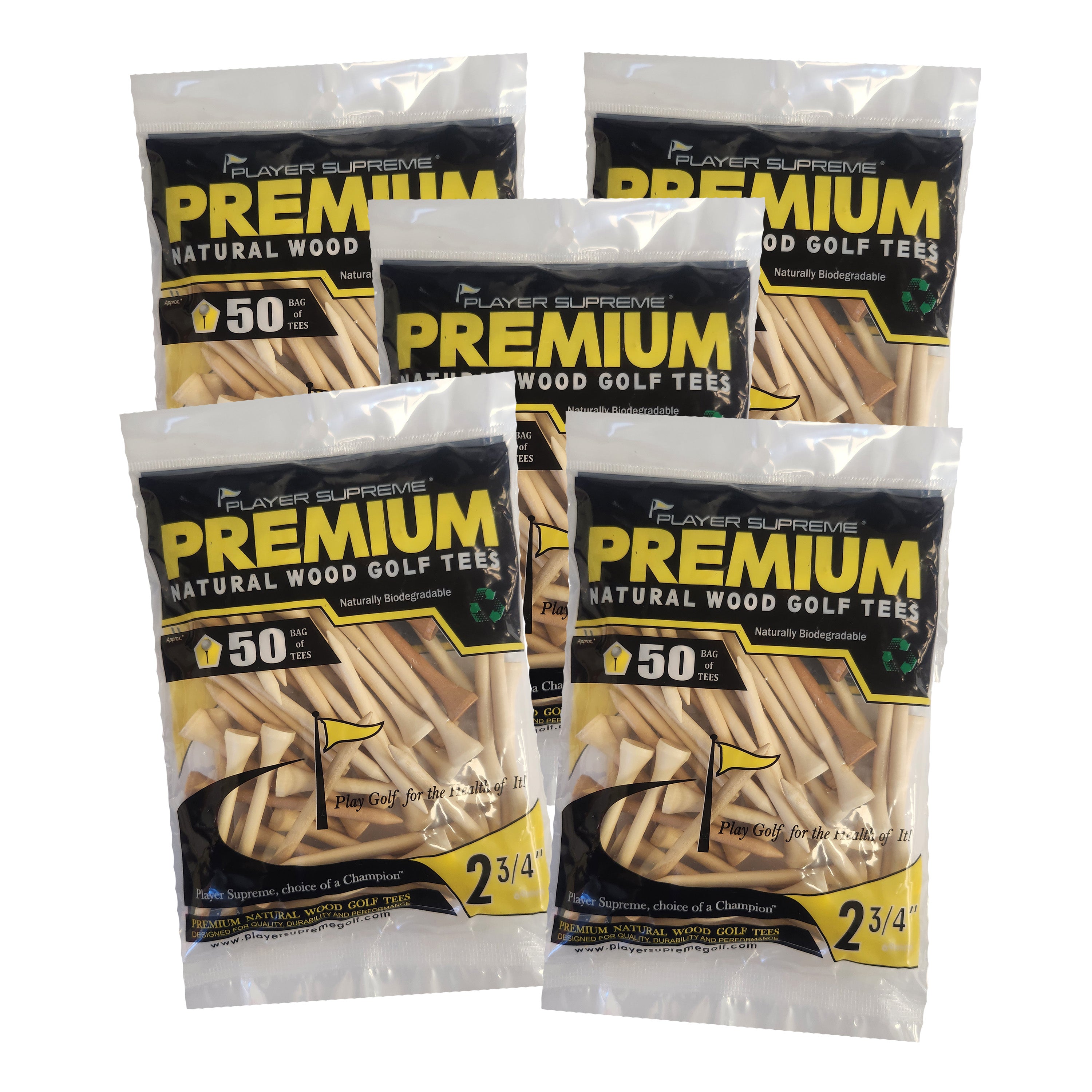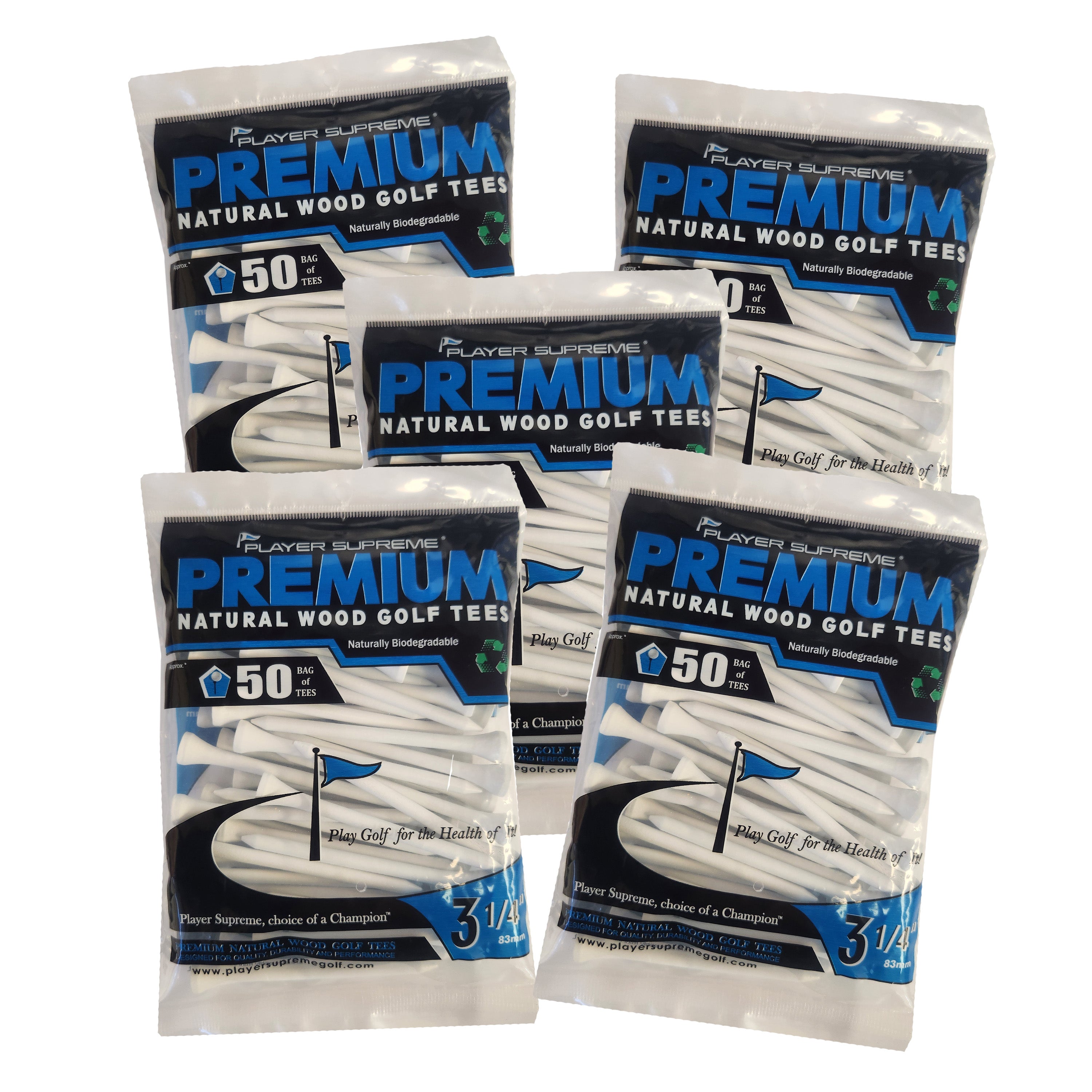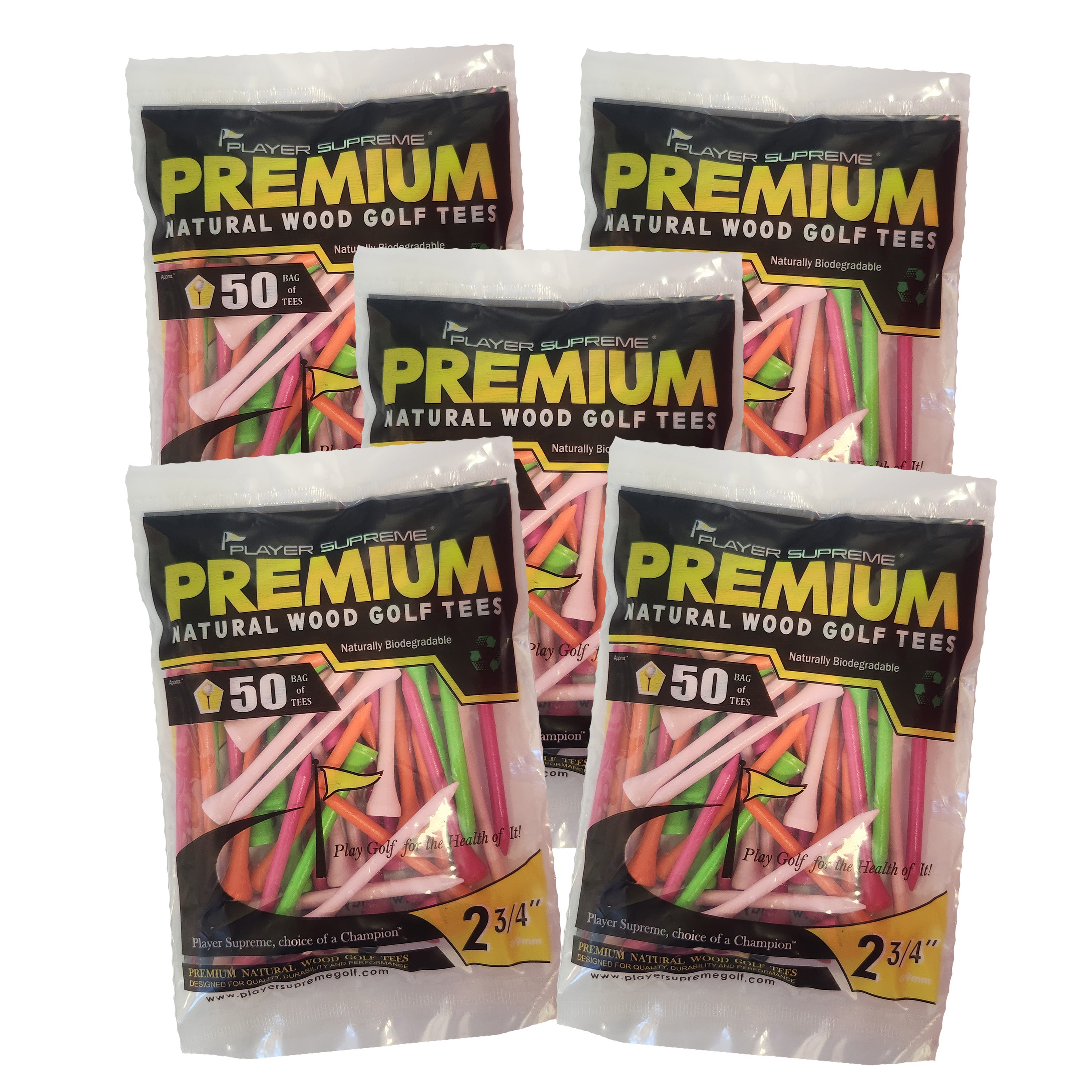 Player Supreme Premium golf tees are a 100% wood product and are naturally biodegradable. These tees are made for maximum accuracy, performance and value. Available in 3 lengths: 2 1/8", 2 3/4" & 3 1/4".