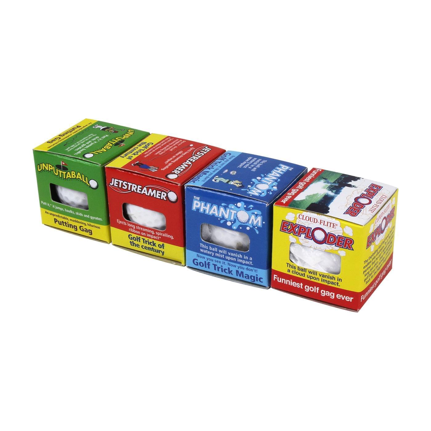 A four piece collection of the world's best trick golf balls from the Trick Golfball Company!