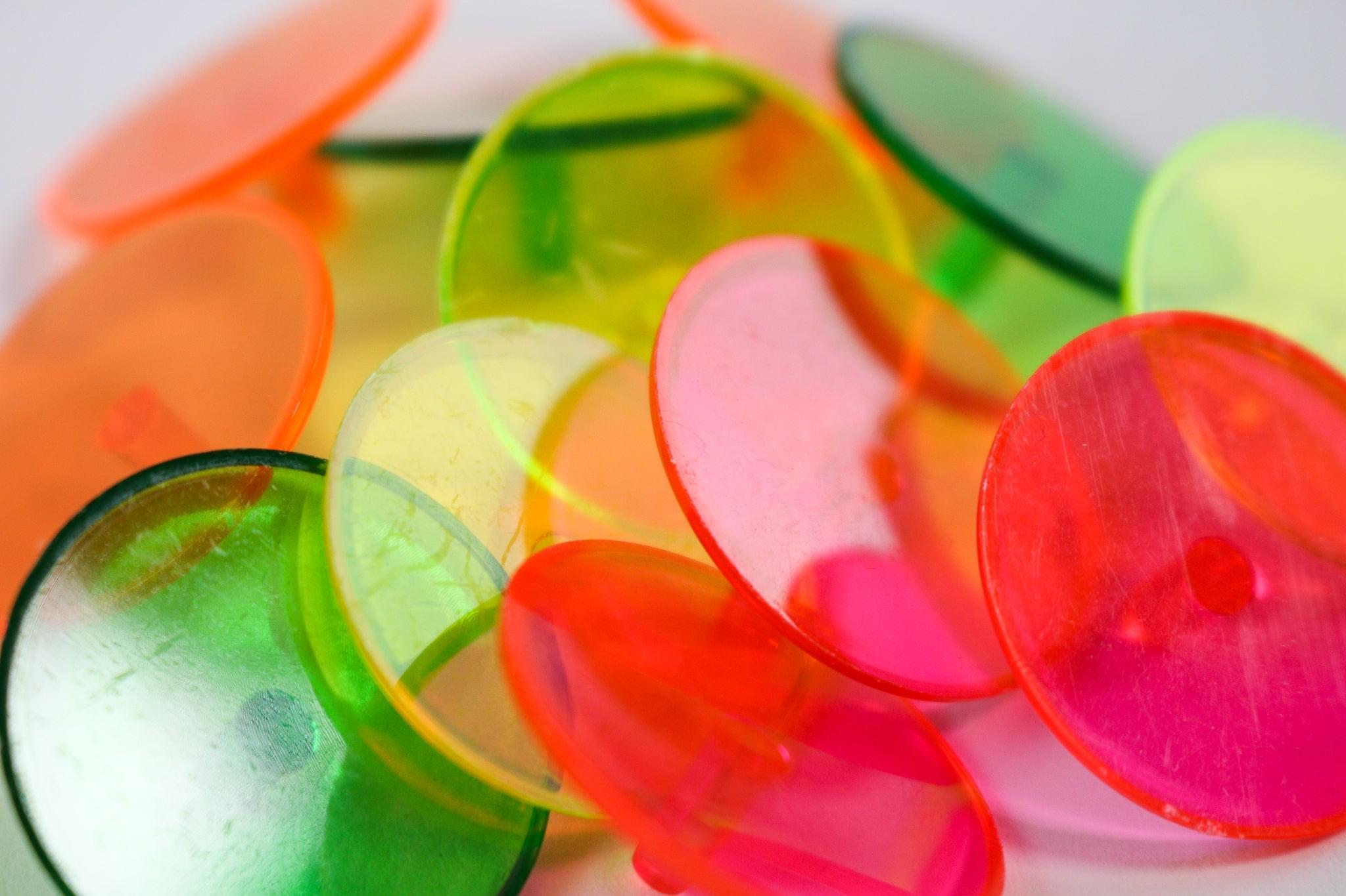 Pack of 500 large neon golf ball markers. 1" in diameter.