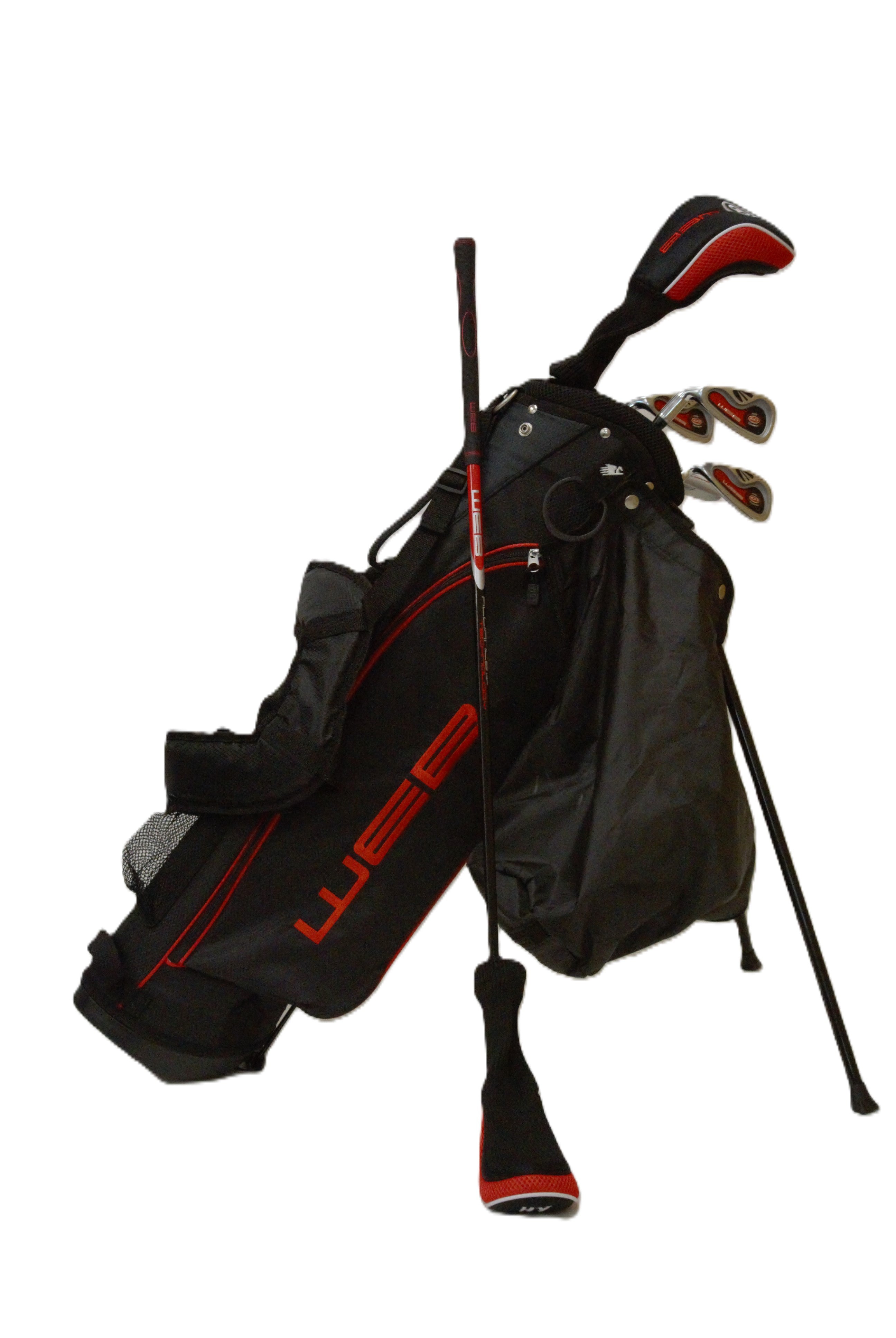 Junior Set Includes: Driver (with headcover), Hybrid (with headcover), #7 Iron, #9 Iron, #P Iron, Putter, with Stand Bag. Bag has Carrying Strap, Waterproof Protective Cover and Mesh Water Bottle Holder. PLEASE NOTE: