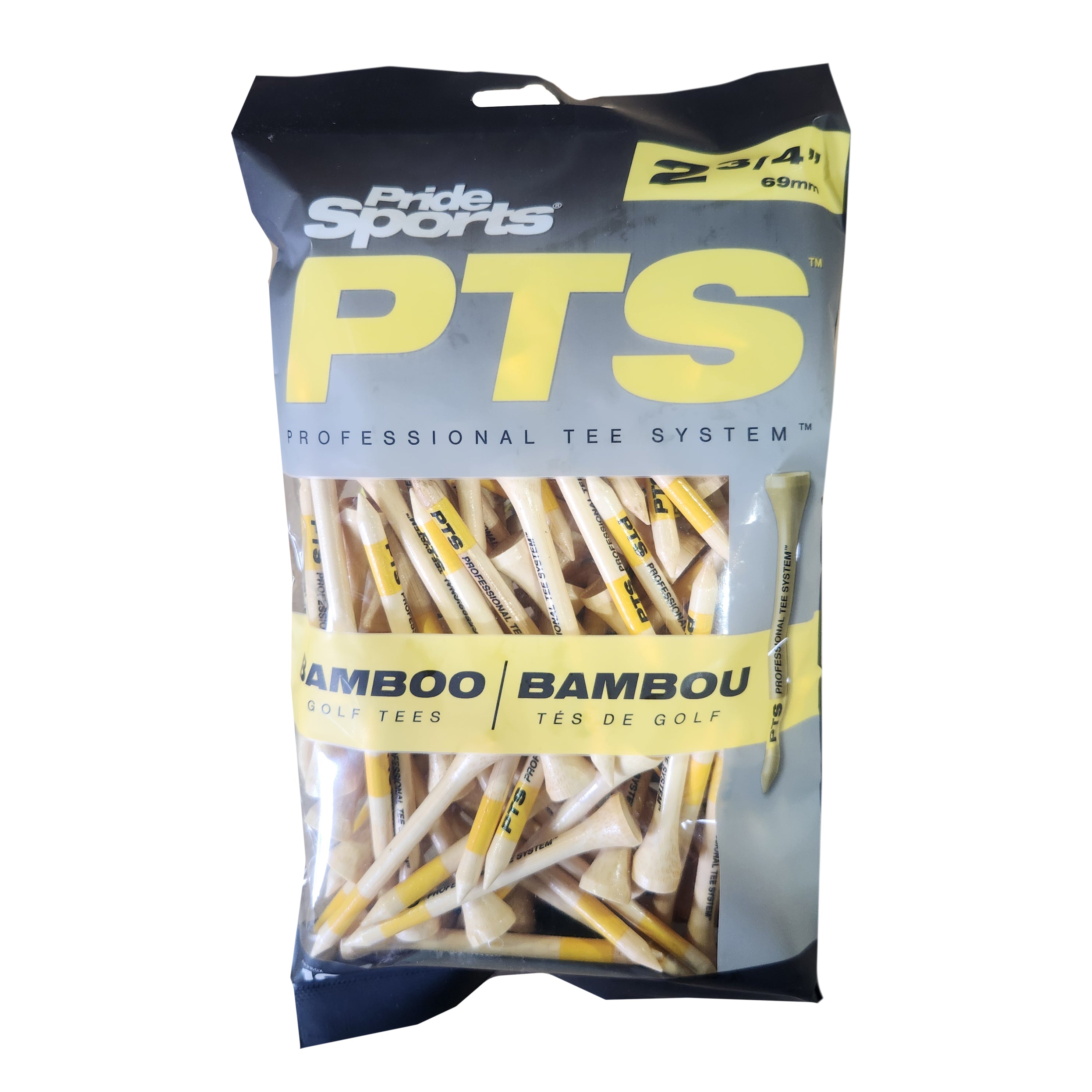 Pride Professional Tee System ProLength 2 3/4" Golf Tees - 100 Count. These tees are high for maximum launch angle. Use these tees with 3, 4 and 5 woods, and drivers under 360cc. Made from sustainable bamboo.