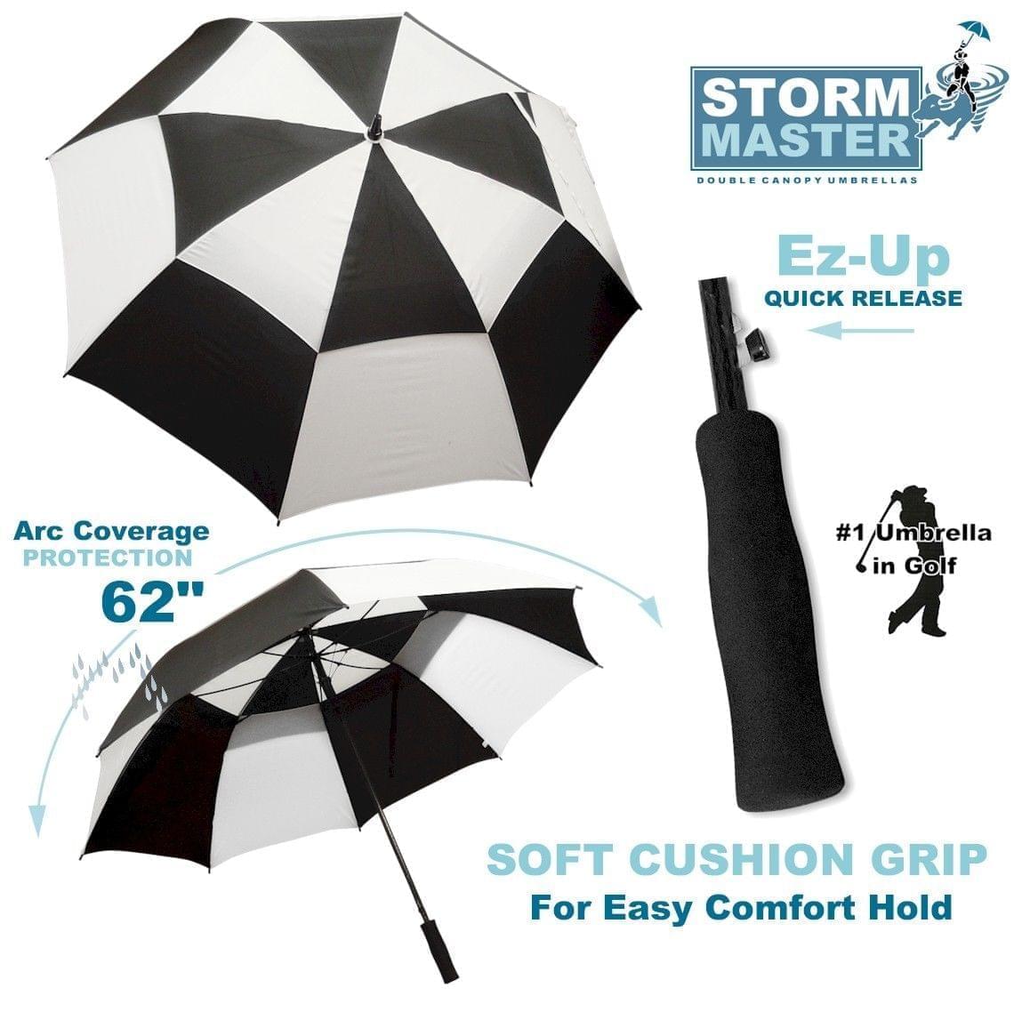 The Player Supreme Double Canopy umbrellas are designed to provide the ultimate protection from wind and rain on the golf course. With its double canopy design- this umbrella is not only super strong and sturdy- but it's also incredibly stylish, with a range of colors to choose from to suit your personal taste! The comfortable grip handle and lightweight design make it easy to carry and use, while the large size provides ample coverage for you and your golf bag. Whether you're playing in windy or rainy conditions, you'll feel confident and ready to take on anything with the Player Supreme Double Canopy umbrella. So, make sure you grab one for your next round and experience the ultimate protection and style on the golf course!