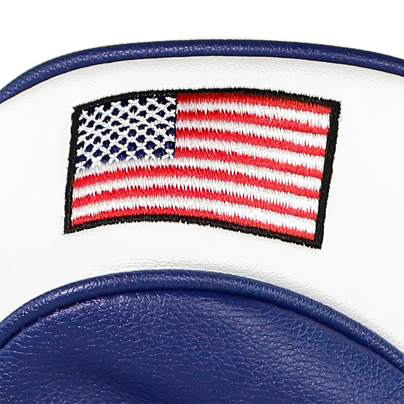 The Classic USA Flag Golf Driver Head Cover is a patriotic and functional addition to any golfer's collection. These head covers are designed to fit 460CC drivers, ensuring that your clubs are protected from scratches and damage on the course. The navy blue and white color scheme with the American flag design is a sleek and timeless look that will complement any golf bag. The covers are made of durable materials, have a cushion padded interior and are expertly embroidered for both style and protection. Keep your clubs well-protected and in great condition with JP Lann’s Head Covers,